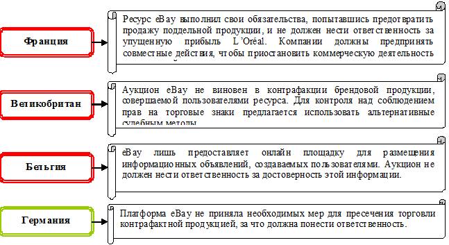 интеллектуальную собственность и торговые марки. В 2009 году суд Германии отклонил жалобу производителя часов Rolex против eBay, а суд США снял с платформы ответственность за продажу контрафактных украшений под торговой маркой Tiffany. А французская Фемида обязала eBay возместить причиненный убыток сразу двум истцам: корпорации LVMN, владеющей брендами Louis Vuitton, Dior, Hennesy, Kenzo и Givenchy (на сумму $83 млн.) и модному дому Hermès (на сумму €30 тыс.). Решение Суда ЕС означает, что в ближайшем будущем правообладатели завалят национальные суды исками против Интернет-аукционов и подобных ресурсов.